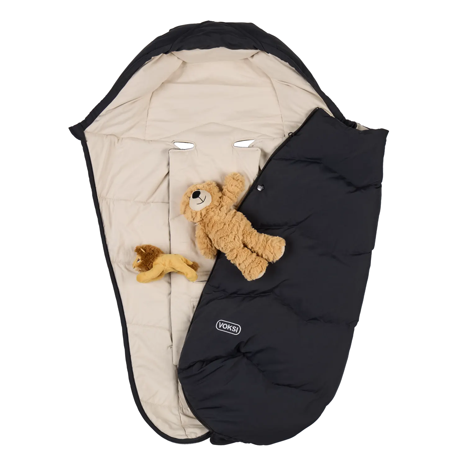 The Voksi Explorer footmuff is the perfect choice for a warm winter. It fits in the pram and the baby bath and offers your sweetheart optimal comfort. In contrast to the Urban footmuff from Voksi, it is a bit lighter and thinner. The filling also consists of down feathers.